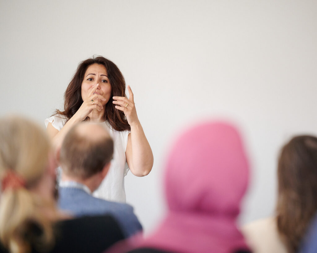 Weekenden blev indledt af Özlem Cekic, som fortalte om sit arbejde med brobygning og dialogkaffe – og om, hvor stor en udfordring brobygning er, når det skal foregå i nære relationer. Vi fik også besøg af Zeinab Mosawi, som delte sin personlige historie om at forsone sig med sin mor efter at være blevet sendt på genopdragelsesrejse til Irak. Professor i kommunikation Jørgen Bloch-Poulsen, retoriker Simon Lund-Jensen og lektor i retorik Kristine Marie Berg klædte deltagerne på til at gå undersøgende og åbent til samtaler om svære emner.
